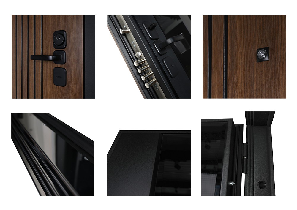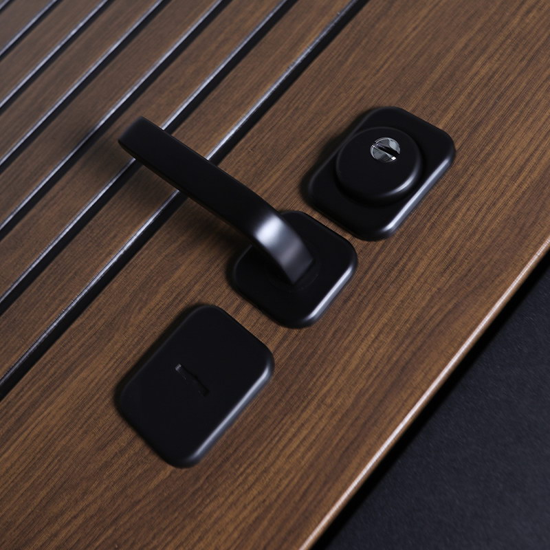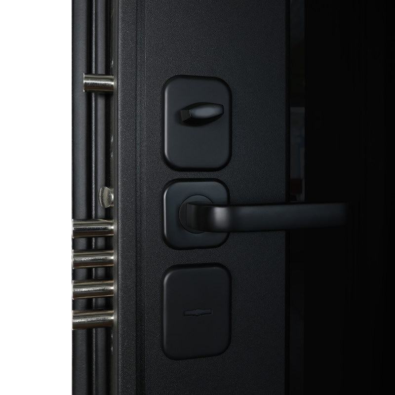 Фурнитура: Ручка , ночная задвижка, глазок на квадратной розетке. Цвет фурнитуры «черный». Смотрите также: ДВЕРНЫЕ ГАДЖЕТЫ