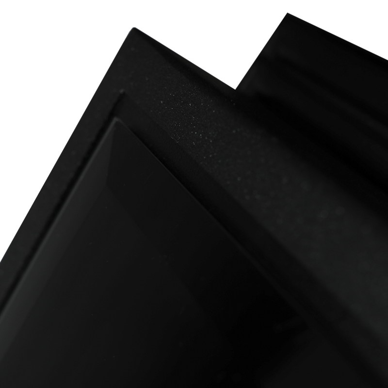 Внутренняя отделка: Экошпонированная панель МДФ 16 мм. Цвет «черный кварц». Зеркальная вставка из черного лакобеля с фацетированием.