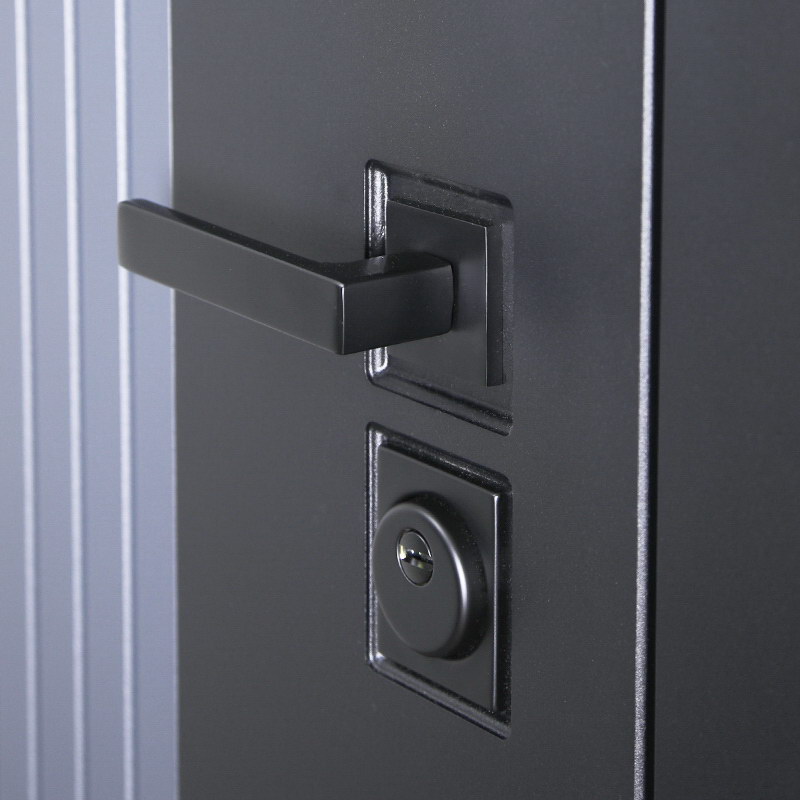 Фурнитура: Ручка, ночная задвижка, глазок на квадратной розетке. Цвет фурнитуры «Черный». Смотрите также: ДВЕРНЫЕ ГАДЖЕТЫ