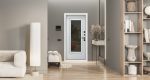 Внутренняя отделка: МДФ 16 мм (цвет «белый матовый»). Стеклопакет. Фрезеровка вокруг стеклопакета. Прижимная рамка в виде широкого багета с применением технологии лазерной резки.