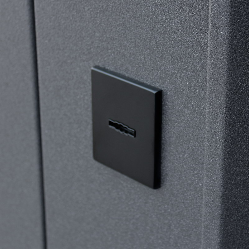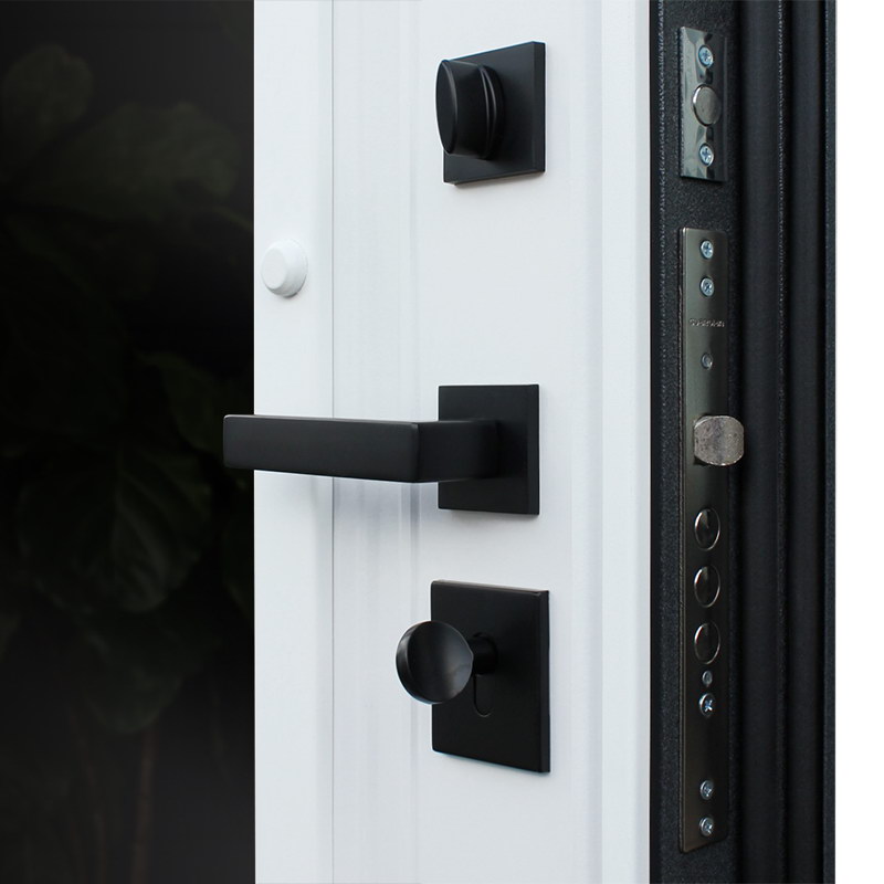 Фурнитура: Ручка , ночная задвижка на квадратной розетке. Цвет «Черный». Смотрите также: ДВЕРНЫЕ ГАДЖЕТЫ