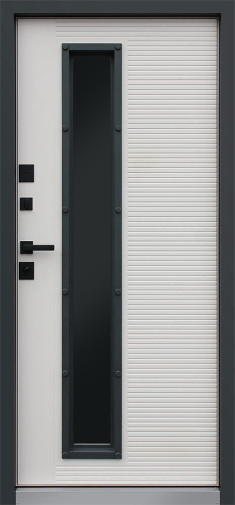 Дополнительно: Евроцилиндр К-В перфокарта. Броненакладка врезная. Штырь противосъемный (3 шт.). Порог из нержавеющей стали (цвет «хром»).