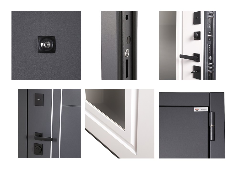 Фурнитура: Ручка, ночная задвижка, глазок на квадратной розетке (цвет «черный»). Смотрите также: ДВЕРНЫЕ ГАДЖЕТЫ