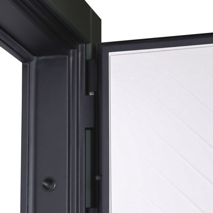 Дополнительно: Евроцилиндр К-В перфокарта. Броненакладка врезная. Штырь противосъемный (3 шт). Порог из нержавеющей стали (цвет «хром»).