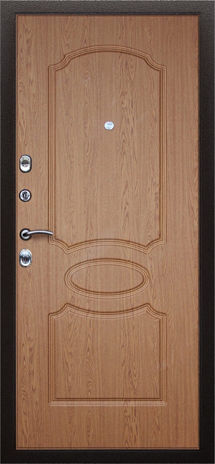 Дополнительно: Евроцилиндр К-В (перфокарта). Броненакладка врезная. Штырь антисъёмный (3 шт). Порог из нержавеющей стали (цвет «хром»).