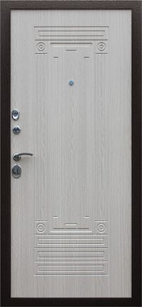 Если вы ищите качественную и массивную входную дверь, непременного стоит рассмотреть вариант «Венеция». Модель выполнена из качественных материалов, во внешней и внутренней отделке применена многослойная фанера итальянского производства. Отдельного внимания заслуживает дизайн этой заказной модели. Внутри в качестве декора использована комбинация стали с зеркалом, цвет выбран беленый дуб + патина серебро. Данная стальная дверь станет настоящим украшением, как дома, так и офиса..