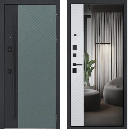 Стальная дверь «Агава» с зеркалом. Заказная модель.